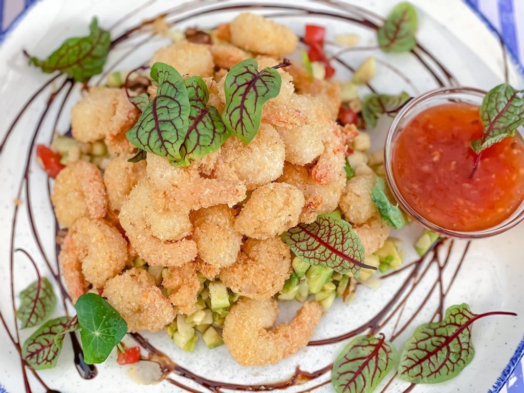 Creveti in crusta de cocos si sos dulce acrisor